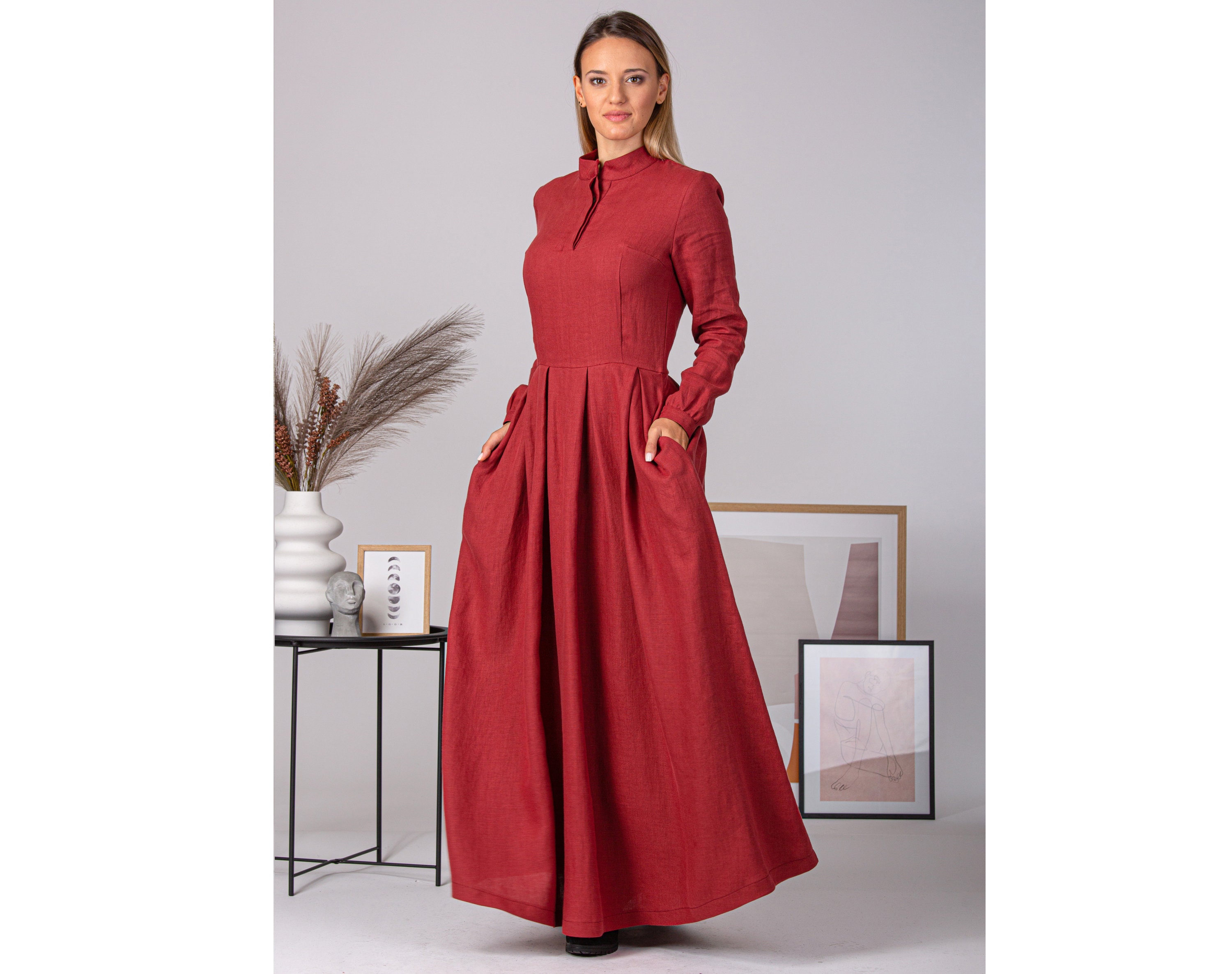 Red Prairie Dress Linen Cottagecore Dress Vintage Inspired Etsy